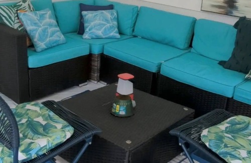 3 bed/2 bath house with tropical backyard, pool, fenced yard, hammock is located in Cocoa. 3 bed/2 bath house with tropical backyard, pool, fenced yard, hammock provides accommodation, featuring Air Conditioner, Private Pool, Security/Safety, among other amenities. This House features Air Conditioner, Private Pool, Security/Safety, to make your stay a comfortable one.