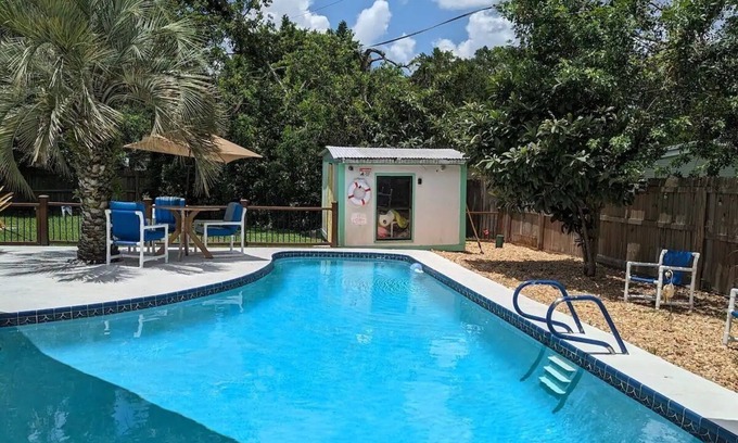 (Travel trailer in backyard share exterior spaces + pool.) (if you want the property private, you can add the daily rate for the travel trailer (without cleaning fee or taxes) if the travel trailer isn't booked yet and have the property private)