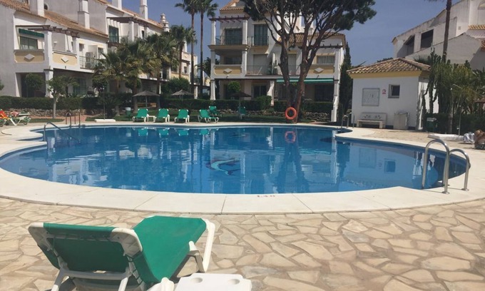 Lovely modern 3 Bedroom, 2 Bathroom recently refurbished Air Conditioned Ground Floor Apartment. Just a few strides to a large swimming pool with adjacent kiddies pools. Ideal for a family holiday. Large terrace coffee table and L shaped seating for 6 with garden decking area - Al- Fresco dining for 6. The 3rd bedroom has bunk beds. Ideal for children. Sumptuously furnished and fully equipped to the highest standard. Fast Fibre WiFi internet. 12 minutes walk to Carib Playa beach and a Chiringuitos with sun bed hire. A few minutes by car to Cabopino Marina (20 minute walk) with its luxury yachts and varied restaurants.