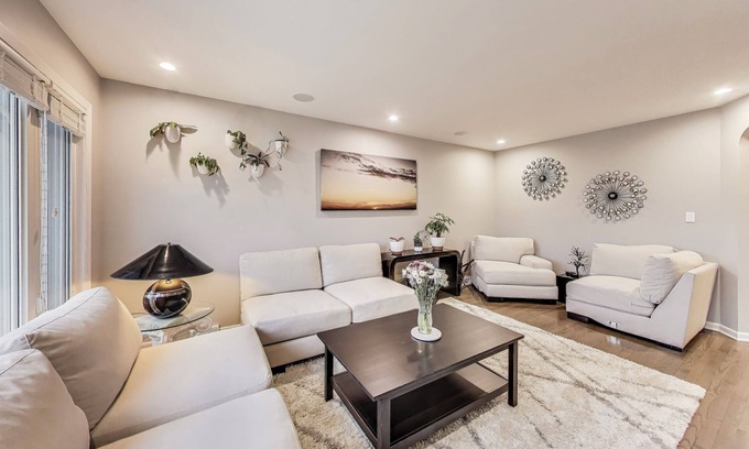 Spacious 3-bed, 2-bath home in quiet neighborhood near Rosemont & O’Hare (10 min) & I-90. Perfect for travelers or groups, it’s 2 mi from Rosemont Theatre, Fashion Outlets, & Parkway Bank Park, plus 5 mi from Rivers Casino. Walk to Jewel-Osco (0.5 mi), 5 min to Mariano’s, or hike the nearby Forest Preserve. Enjoy a 2-car heated garage with 220v for EV charging. Close to Harlem Irving Plaza (1 mi) & downtown Chicago (12 mi). Ideal for a night or months—book now!