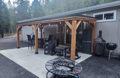 Located in Placerville, this 3-bedroom house is a beautiful retreat for guests. With 1 king bed, 2 queen beds, and a cozy living room with a sofa bed, there's plenty of space for everyone. Enjoy the convenience of WiFi, heating, AC, and a fitness room with 190 degree sauna. Adjustable dumbells and plenty of weights for the heavy lifter. Gym has a TV and Pacman for gaming. There are outdoor games on site and indoor table games. The 2 bathrooms are equipped with a hairdryer and a shower. Minutes from apple hill and downtown. Hit lake tahoe in a hour and skiing in 45min. Tucked away with no visible neighbors to enjoy peace and quiet. 2 firepits and 2 bbq to enjoy outdoor cooking. Evenings are very calm usually no wind or very little to hang out by the fire and roast marshmellows. Driveway is a wrap around giving easy access and plenty of parking. Snows in the winter with the road getting plowed. Do not need 4 wheel drive. House is 1 year new and has very nice finishes to enjoy the comfort of nice country living. Book now and enjoy everything this welcoming house has to offer.