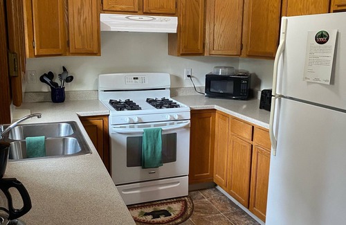 - 2 bedroom, 1 bath quiet lodge close to town with forest views!