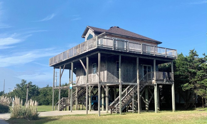 Offering 3 Bedrooms, 2.5 baths, an open living space with cathedral ceilings and plenty of ocean views. The private, huge wrap around deck allows you to soak in both Ocean and Sound Views as well as amazing sunrises and sunsets! Hear the relaxing sounds of the ocean waves from the deck and bedrooms. See the unspoiled and breathtaking stars and planets from our comfortable deck chairs. Make a wish on the shooting stars.
