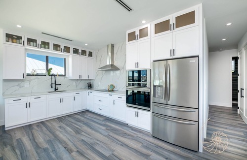 Live a life of leisure at this newly constructed 3 bed, 2 bath home in the heart of Layton. At the main entrance, accessed by the stairs to the side of the carport, you’ll find a lovely open and bright living space with large sliding glass doors and windows, allowing for ample sunlight, and a lovely island breeze. Walking along the hallway you’ll find the primary suite with a king bed and full bath. Located at the end of the hallway are the two guest bedrooms, one with another king bed and the other with a full bed and office/desk space. There is a shared bath just across the hall from both rooms. Outside, along with the grilling area, is a sitting area, pool and loungers for relaxing by the water. Bringing your boats isn’t a problem, as this house has 50’ of dockage and comes outfitted with a 15,000 lb boat lift, fish cleaning station and commercial size ice maker to keep your dinner or cocktails cold for those long days on the water. Follow the canal that opens right up to the Atlantic Ocean or take a short boat ride to Channel 5 bridge to access the Bay.