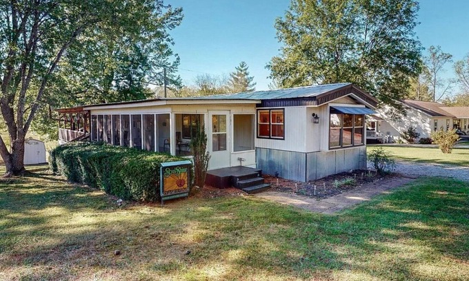 This Kentucky Lake mobile home boasts 3 inviting bedrooms, including 1 queen/full bed, 1 full bed, and 2 twin bed. With amenities like WiFi, heating, and a washing machine, guests can relax and unwind in comfort. The 2 beautiful porches allow you to relax and watch the wildlife and peace and quiet. Make your visit one for the books with a stay at our place. Only 15/20 minutes from Murray State University