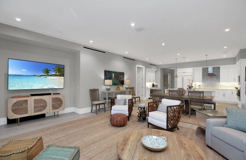 - Versatile Entertaining Spaces: The grand room and oversized living terrace are ideal for gatherings, featuring cozy seating, a beverage bar, and direct access to the lagoon-style pool.