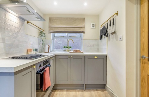 Bedroom 3: Kingsize (5ft) Bed, Smart TV. Gas central heating, electricity, bed linen, towels and Wi-Fi included. Travel cot, highchair and stairgates. . Enclosed rear garden with children’s play area. Hot tub for 6 (private).1 small dog welcome (not permitted upstairs). No smoking. Please note: There is a step in the garden.. Little Apple is a charming Grade II listed property which has been fully renovated in 2022. The house has been beautifully decorated throughout and now boasts a luxury feel with all of the mod cons and home comforts that you would want. With a large covered hot tub in the enclosed rear garden, the roaring wood burner in the living room and Smart TVs in all the rooms, you may struggle to leave ’Little Apple’ once you’re here. On the ground floor there is a living room with a wood burner and large Smart TV, a separate dining room with a good-sized dining table, relaxing views of the trees above the River Eden and a Smart TV. The well-equipped kitchen has an electric hob and electric fan oven, dishwasher and family-sized fridge/freezer plus a utility room offering a washing machine, a place to hand wash clothes and a downstairs toilet.