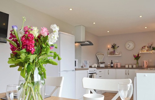 Kitchen/dining room: 40" Smart TV, Patio Doors Leading To Decked AreaElectric Cooker, Microwave, Fridge/Freezer, Dishwasher, Washing Machine