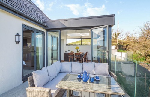 Living room: Smart TV, Patio Doors Leading To Balcony. Gas central heating, electricity, bed linen, towels and Wi-Fi included. Welcome pack. . Decking with outdoor furniture. Balcony. Private parking for 3 cars. No smoking.. Resting within the quaint hamlet of Bryn Pydew, Blodfryn is a stylish reverse-level layout property less than three miles from the beach and boasts coastal and countryside views. Following a day of exploring all that the area has to offer, come back to this property to relax and enjoy a peaceful getaway for you, your family and friends. This stylish, modern, well-designed property provides a very well-equipped kitchen/dining roomr complete with skylight and patio doors opening out onto a raised deck area with distant sea views. It is a fabulous space for rustling up a hearty Welsh breakfast or family meal for all to enjoy. The decking area provides comfortable seating and dining, perfect for morning coffee or evening sundowners. There are three lovely bedrooms on the ground floor to chose from with the beds configured as two king size, and a super king size which can be made up as twin beds on request. All have quality mattresses and bedding providing you with a good night’s sleep. The family shower room is also on the ground floor. Head upstairs to the living room to experience spectacular scenic views from the comfort of the sofa. Hard wired multi room speakers can be found throughout, offering a unique and enjoyable audio experience controlled and connected using smart technology. You will also find a Smart TV and board game area, making this a fabulous social area to spend time with family and friends.