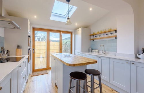 Bathroom: Bath With Shower Over, Heated Towel Rail, Toilet. Gas central heating, electricity, bed linen, towels, Wi-Fi and logs for wood burner included. Travel cot and highchair. Small enclosed garden with patio, decked area, garden furniture and BBQ. Bike store. Private parking for 4 cars. No smoking.. A labour of love for the architect owners, this detached single-storey seaside cottage has been lovingly renovated inside and out to exceptional standards, making it a real treat for a family getaway to Sussex. With an outside shower and shed storage, this is a perfect base for water sports enthusiasts, dog walkers and beachcombers, as well as being a spacious and comfortable home from home, perfect for entertaining and relaxing.
