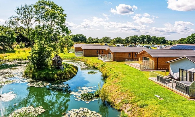 A stunning three bedroom 20ft Lodge built in 2021, consisting of master bedroom with a king-size bed, with en suite shower room, twin room consisting of two single beds, and a bunk bedroom, consisting of two smaller bunk beds, family bathroom with shower over bath, spacious open plan lounge with electric wood burning stove and dining area. The well-equipped kitchen contains an oven, toaster, kettle, microwave/grill combination oven, 2-ring hob, fridge with freezer box and dishwasher. An iron/ironing board and hairdryer are also supplied. Spacious veranda with private luxury hot tub and garden furniture overlooking the lake. The perfect place to relax after exploring the area. Maximum occupancy is 4 adults and 2 children.. Flaxton Meadows Luxury Lodges is a part of our Evermore Lodge Holidays Collection in a beautiful park comprising of a bespoke and luxury accommodation coupled with private hot tubs boasting wonderful views over the scenic countryside. The lodges are wrapped around a small lake. This is the perfect place for romantic escapes, blissful breaks and outdoor adventures with friends and family.