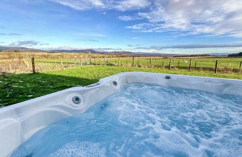 Bathroom: Bath, Toilet. Air source heat pump central heating, electricity, bed linen, towels and Wi-Fi included. Welcome pack. Travel Cot.. Enclosed rear garden with sitting-out area, garden furniture and BBQ. Private hot tub. 2 small dogs or 1 medium/large dog welcome. Hot tub for 5 (private). Private parking for 4 cars. No smoking.. Fiadh Ruadh is a modern, luxury 3-bedroom house located within the grounds of Gartclach Farm. One in a row of three large, detached houses surrounded by stunning countryside and each with their own enclosed garden where you can sit in the hot tub and enjoy the beautiful views. You may even catch a glimpse of red deer that are regular visitors in the fields surrounding Gartclach farm. There are 3 large bedrooms, so you can choose between 2 kingsize rooms or a twin, one of the kingsize rooms has en-suite facilities and a dressing area with space for a cot.