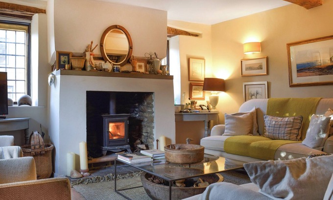 Living room: Smart TV, Woodburner