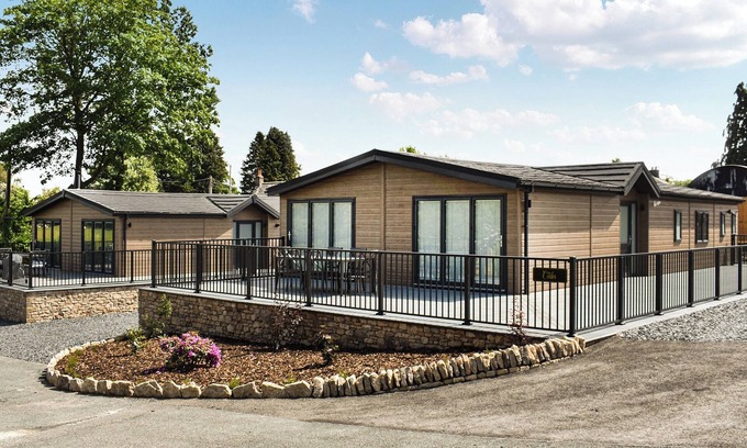 Shower Room: Walk-In Shower, Heated Towel Rail, Toilet. LPG central heating, electricity, bed linen, towels and Wi-Fi included. Initial fuel for wood burner included. Travel cot and highchair. . Front garden with sitting-out area, garden furniture and BBQ. Back garden. Private parking for 3 cars. No smoking.. New for 2023, The Oaks is a magnificently large lodge, easily able to accommodate guests up to six in total comfort. With an open-plan living room and dining area with wood burner and large Smart TV, this impressive space looks through the bi-fold doors onto the large private patio area with seating and outdoor dining in the beautiful Cumbrian air. There is a large kitchen containing all modern appliances. With the three kingsize bedrooms all on the same floor, master bedroom with oversized private bathroom, plus another with an option to split into twin beds, this exceptional lodge will have you feeling in total comfort in no time.