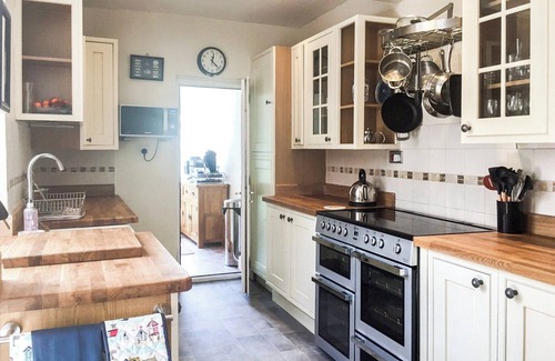 Bathroom: Bath, Walk-In Shower, Toilet. Gas central heating, electricity, bed linen, towels and Wi-Fi included. Inital logs for wood burner included. Enclosed rear garden with sitting-out area and garden furniture. Bike store. Private parking for 2 cars. No smoking.. Located on a quiet private lane this quaint three bedroomed cottage will accommodate up to six guests and has lots of space with a great sized dining room, living room and a well-equipped kitchen. There is a large range cooker plus a utility room with washer and a dryer. There is a downstairs double bedroom, and the added benefit of a downstairs toilet. The light and airy living room is the perfect spot to relax in after a busy day exploring or why not dine al fresco in the beautiful, enclosed garden? Upstairs are two further bedrooms, one with a kingsize bed and a further bedroom with bunk beds. On this floor is the family bathroom with Victorian-style bath and a separate shower which is accessed through the bunk bedroom.