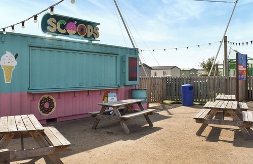Whether you’re seeking relaxation or adventure, this mobile home conveniently located close to the holiday park’s facilities, promises an idyllic coastal escape for all.. 4 steps to entrance.