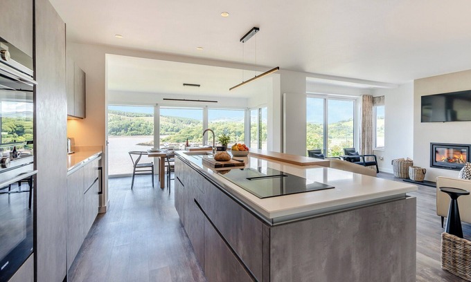 This exquisite property is beautifully finished throughout, with quality furnishings and artwork adding a touch of sophistication to every corner. The heart of Berkeley is undoubtedly its magnificent open-plan living area, designed to maximise the spectacular surroundings. The spacious living, dining, and kitchen areas are bathed in natural light, courtesy of the floor to ceiling windows and patio doors that lead out to an enclosed balcony. Here, guests can enjoy uninterrupted vistas of the Estuary, framed by the rolling Galloway countryside. This serene spot is perfect for al fresco dining, morning coffee, or simply soaking in the tranquil atmosphere. Inside, a large wood burner provides warmth and ambiance on cooler evenings, while the ultra-modern kitchen is equipped with top-quality appliances, ensuring that meal preparation is a pleasure. All on one level, the luxury continues throughout Berkeley with three beautifully appointed bedrooms. Each bedroom features super comfy beds, high-quality linens, and sleek en-suite bathrooms, offering a private retreat for guests. The master bedroom is a stand out, boasting stunning double-aspect windows that showcase the most incredible views, making mornings here a truly special experience. Additional conveniences include a snug room with TV, a utility room, ensuring ample space and comfort for all guests. Outside, the property is surrounded by well-maintained gardens, particularly to the front, where the views can be best appreciated. The combination of the outdoor balcony and garden areas provides multiple options for enjoying the fresh coastal air and scenic beauty.