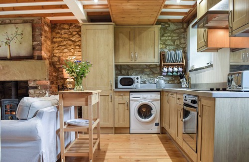 Bathroom: Bath With Shower Over, Toilet. Electric central heating, electricity, bed linen, towels and Wi-Fi included. Initial logs for wood burner included. Travel cot, highchair and stairgate.. Enclosed lawned garden with sitting-out area, garden furniture and BBQ. Gym and tennis court (shared with other properties on-site). Swimming pool (shared with other properties on-site, 9.5m x 3.5m, depth 1m x 1.5m) Private parking for 3 cars. No smoking.. This fabulous cottage has it all, a scenic tranquil location, cosy comfortable furnishings with a warming wood burner as well as an on-site indoor swimming pool. Renovated to an exceptionally high standard in 2021, the cottage has some wonderful original features, in keeping with a barn conversion, including beamed ceilings throughout.