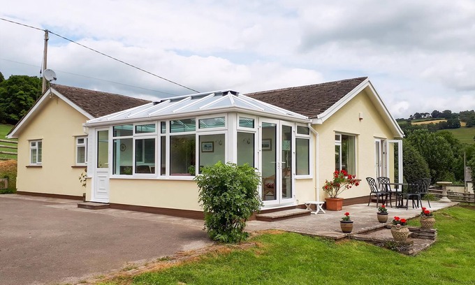 Separate Toilet.. LPG central heating, electricity, bed linen, towels and Wi-Fi included. . Enclosed lawned garden with garden furniture and gas BBQ. Bike store. Private parking for 4 cars. No smoking.. Tegfan is a warm and welcoming bungalow in the village of Llangenny, a short drive from the picturesque town of Crickhowell, nestling in the wonderful Usk Valley. Tegfan offers plenty of space for a family or group of friends and is all on one level. As you enter through the lovely conservatory, you will undoubtedly be struck by the amazing views of the Black Mountains; the eastern range of the Brecon Beacons National Park. There is also gorgeous view from the open plan kitchen and living room, and of course the spacious garden. The owner, who lives nearby, has thoughtfully furnished and equipped the bungalow, and it offers spacious accommodation, with three bedrooms, a bathroom and additional walk in wet room, ideal for anyone less mobile.