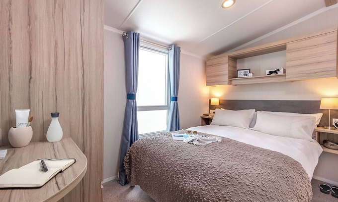 This modern 12ft wide caravan is bright, airy and delivers a stylish and modern interior. There is a double bedroom with an en suite toilet, and two twin bedrooms. The open-plan living area is contemporary in design has a large flat screen Smart TV and has a lovely spacious feel. The kitchen is fully equipped and provides dining space with table and chairs to suit the size of the family. There is a family shower room to complete this lovely family caravan.