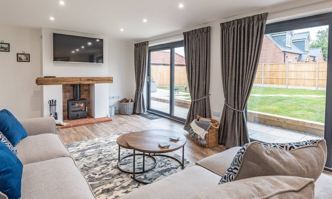 Bedroom 3: With twin beds and en-suite toilet.. Air source heat pump underfloor heating, electricity, bed linen, towels and Wi-Fi included. Logs for wood burner included. Travel cot, highchair and stairgate. Welcome pack. Enclosed lawned garden with patio, garden furniture, BBQ and firepit. 1 small dog welcome. Private parking for 2 cars. No smoking. Please note: There are 2 steps in the garden.. Centrally located in this peaceful village close to St Nicholas Church this luxury cottage enjoys a large enclosed garden ideal for families to play and enjoy. Just 10 miles from the sandy beaches, fun fair and amusements at Skegness or 30 minutes’ drive inland to the city of Lincoln where you can spend a day out exploring the castle and Bailgate area full of boutique shops, tea rooms, restaurants and bars for refreshment. Cadwell Park is 15 minutes’ drive with motorsport and track days throughout the year. After your days out return to relax in front of the wood burner and enjoy the lovely view of the garden through the large patio doors or wander a few minutes up the lane to the local pub for good food and drink. Pub 200 yards, shop ½ mile.