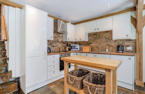 On the ground floor you’ll also find a modern bathroom with bath, while upstairs there are three comfortable bedrooms: two with super king-size zip-and-link beds (which can be set up as twins), and a third triple room with a bunk bed and a single bed, perfect for kids or friends sharing.