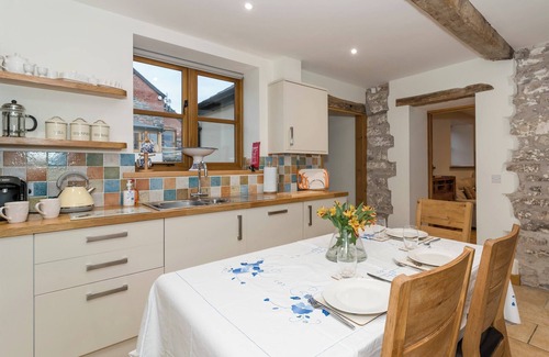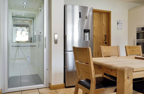 Bathroom: Bath With Shower Over, Heated Towel Rail, Toilet. Oil central heating (underfloor on ground floor), electricity, bed linen, towels and Wi-Fi included. Initial logs for wood burner included. Travel cot and highchair available on request. Welcome pack. Lawned garden with patio, garden furniture and BBQ. Balcony. 2-acre natural grounds with children’s playground (shared). Hot tub for 6 (private). 2 dogs welcome, to be kept on a lead at all times (sheep country). Bike store. Private parking for 2 cars. Wheelchair access. No smoking. Please note: The property has a natural water supply from a borehole.. This lovely, detached barn conversion overlooks the surrounding rolling countryside. With exposed stone walls, wooden floors and a delightful farmhouse style kitchen, it is a charming property in which to relax. What makes it unique is that it offers level access throughout, as there is an internal lift connecting both floors, making it ideal for those members of your party with limited mobility or wheelchair users.