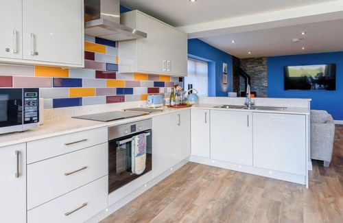 Hunroe Brow is spacious and perfect for spending quality time together, socialising and creating memories which you are sure to treasure. From the living area, spill out into the sea-facing garden, where the glass door opens out onto the raised seating area, with steps down onto the lawned, enclosed garden stretching out across the cliff top. On the ground floor you have a double bedroom with an en-suite wet room, plus a ground floor bathroom with a spa bath.