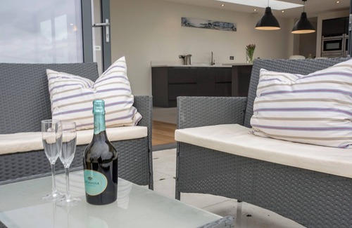 Living area: 55" Freeview Smart TV, Woodburner, Patio Doors Leading To Courtyard