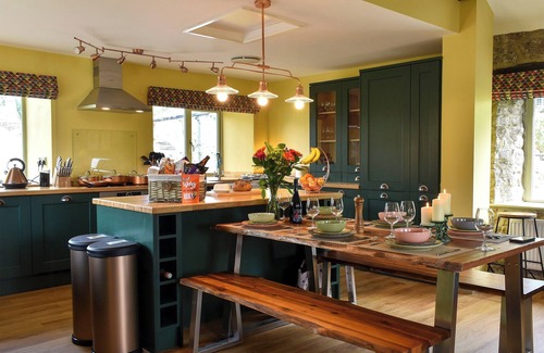 An upside down house, the three bedrooms are on the ground floor, along with two bathrooms, with windows giving gorgeous glimpses of the stunning local scenery, even whilst you lie in bed. The inner hallway area has been turned into a library with maps and booklets of the local area, detailing wonderful walking routes to suit every ability. Entrance to the house is via a boot room, ideal for sorting your muddy boots, coats and dogs after a busy day exploring the Dales. Upstairs, you’ll be wowed by 360 degree views of the valley with each window framing a different part, immersing you in one of the most spectacular and beautiful limestone landscapes in the country, whilst snuggled up in front of the wood burner.