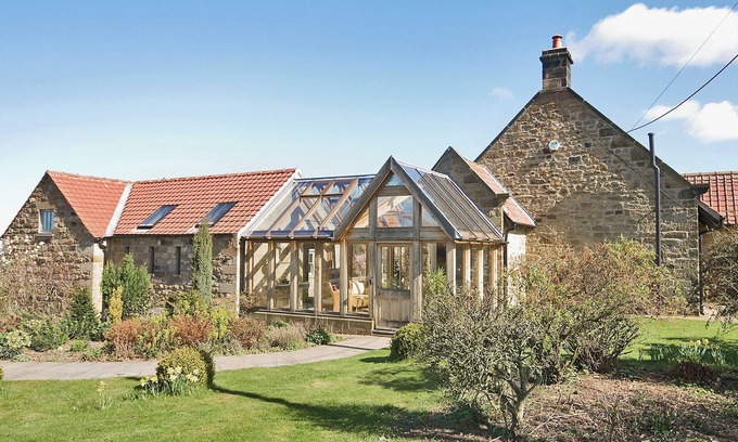 Study: Galleried,. Oil central heating (underfloor in bathrooms), electricity, bed linen, towels, Wi-Fi and fuel for multi-fuel burner included. Travel cot and highchair. . Enclosed lawned garden with courtyard, patio, summerhouse, patio and garden furniture. Private parking. No smoking.. Dating from the early 1900s, and formerly a reading room, this detached holiday property has been sympathetically restored with beautiful beams, exposed stonework, stone and oak floors, glass hallway and sumptuous furnishings and fabrics. Thimbleby village is on the edge of the North York Moors National Park, with a wealth of interesting walks and mountain bike trails through spectacular moorland. Visit York, Helmsley, Castle Howard and Fountains Abbey. Cod Beck Reservoir nearby. Shops and pubs 1 mile.