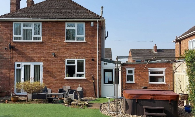 Shower room: With shower cubicle and toilet.. Gas central heating, electricity, bed linen, towels and Wi-Fi included. Initial logs for wood burner included. Welcome pack and doggy extras. Enclosed lawned garden with garden games, patio, garden furniture and barbecue. Hot tub for 6 (private). Garage/equipment store. Bike store. Private parking for 3 cars. No smoking. Please note: Couples and family bookings only, no hen or stag parties. No children under 10 years old. This property has a security deposit of £200.. This detached house is located on a quiet estate in the village of Wall Heath, near Kingswinford and has been thoughtfully designed especially for holiday makers who wish to explore the area. The holiday property has a lovely, private, enclosed garden which is not overlooked, and there is a private hot tub, sitting out area and barbecue, ideal for gathering the family to enjoy an al fresco supper as the sun sets.