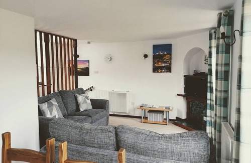 With a small balcony overlooking the viaduct, this cottage lies on the edge of the vibrant coastal town of Whitby with its iconic abbey.. 1 step to entrance.