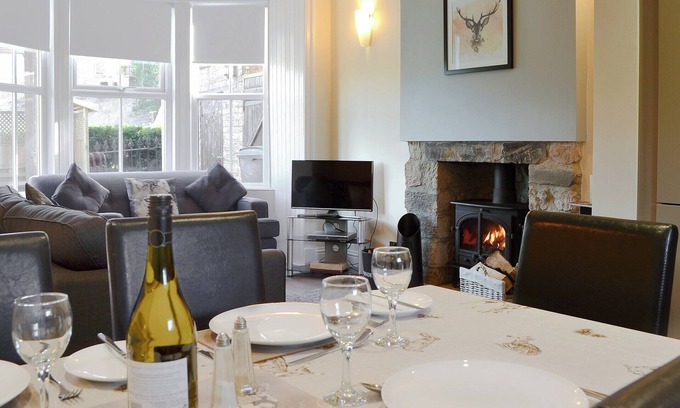 Bedroom 3: 2 x Single (3ft) Beds. Gas central heating, gas, electricity, bed linen, towels and Wi-Fi included. Initial logs for wood burner included.. Small sitting-out area and garden furniture. On road parking. No smoking.. Dovecote House lies just 20 minutes drive from the glorious Northumbrian coast. This stylish, Victorian, terraced house is perched above the pretty town of Wooler, on the edge of the Northumbrian National Park. The house is decorated and furnished in a contemporary style with great attention to comfort and retaining some original features. There is both a spacious family kitchen with 2 comfortable sofas, a cosy wood burner plus a chic, first floor sitting room with views of the surrounding hills. Cross the causeway to visit the picturesque, Holy Island, head for the beach at Bamburgh with its stunning castle, look out for puffins and seals on a boat trip to the Farne Islands from Seahouses or take a day to explore the magic of Alnwick Castle, famous for the Harry Potter films. There is great hill walking in the Cheviots and cycling on peaceful local roads. Golf is available, 4 miles away. Beach 16 miles. Shop, pub and restaurant 175 yards.