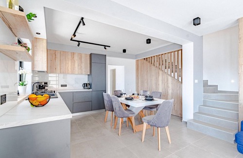 The interior of the house is modern and equipped with a high level of comfort. A separate, air-conditioned fitness room allows you to exercise even in the heat. Still not sweating enough? You can test your limits in the sauna. Afterwards, take a refreshing dip in the pool or in the sea - the boat landing stage and the opportunity to jump into the water are just 30 metres from the house. Bring your fishing rod and feast on freshly caught fish.