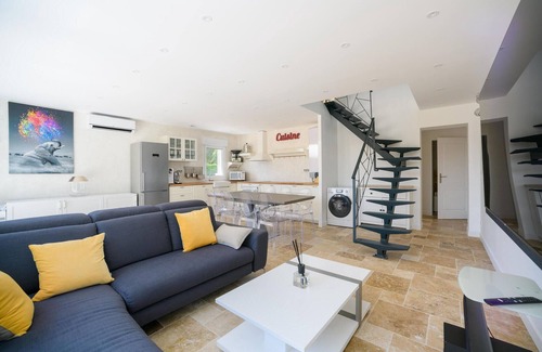 Here you can relax in an attractive setting with your loved ones. The comfortable house welcomes you in a quiet location in the Loire Valley. With its bright rooms, modernly decorated with cleverly placed color accents, the house is the ideal place for a nice time out with the whole family. Use it as a base for exciting excursions and enjoy time together, in the living area you can cozy up in the evening, eat together, watch a movie or have a game night.
