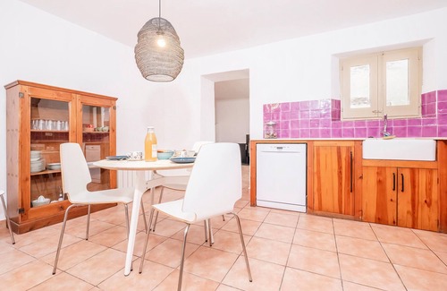 Welcome to this inviting and spacious village house in the heart of l'Armentera, ideal for a relaxing holiday with your family. The living area is bright and friendly, and the lovely furnishings exude Mediterranean flair. Start your day with breakfast on the terrace and plan your excursions in the varied surroundings. The central location in the Alt Emporda region allows you to enjoy both the tranquillity of the orchards and the proximity to the beaches of St. Pere Pescador and L'Escala.