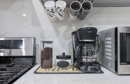 ** Fully equipped for all your culinary needs, our kitchen features a gas stove/oven, rice cooker, cooking pans, and essential supplies like coffee, oil, sugar, and salt. All modern appliances including a coffee machine, microwave, fridge, and filtered water dispenser. Perfect for guests who love to cook and dine in comfort.