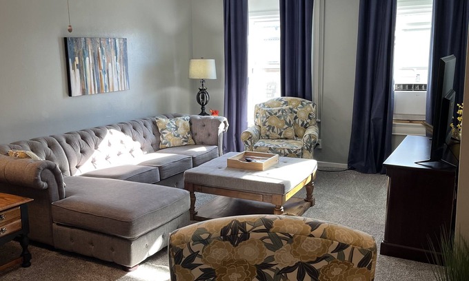 This completely remodeled, three bedroom, upstairs apartment (there are quite a few stairs, no elevator) is conveniently located on Main Street, above a local bar (PLEASE NOTE: the music might be louder later at night, especially on the weekends) and within walking distance to shopping, eating establishments, and a gas station. The apartment contains a full kitchen for all your cooking needs. Located within a mile from the city’s swimming pool and park, which includes an elaborate wooden wonderland and multiple shelters.