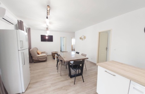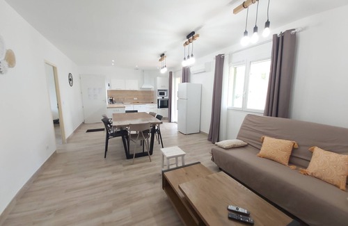 - Appart 4 pers piscine chauffée, wifi, 2 chambres, clim, 7 min mer, 1 min rivière