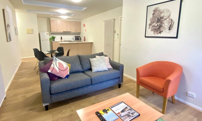 Your stay includes access to a variety of exceptional amenities designed to make your experience memorable. Enjoy a large communal living space featuring a full kitchen and lounge area, perfect for pre-wedding gatherings or post-event celebrations with family and friends. The apartment is equipped with laundry facilities for your convenience and offers undercover parking. Our accessibility-friendly units ensure that everyone can enjoy their stay without hassle, with lift access available upon request.
