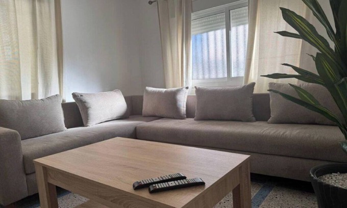 Escape to this fabulous apartment in picturesque Martil. This cozy retreat features 3 bedrooms - one with a queen bed and two with twin beds. Unwind in the soothing jetted bathtub after a day of exploring. With amenities like WiFi, AC, and a washing machine, guests will feel right at home. Two additional living spaces with comfy sofa beds provide extra relaxation space with a great location near to the beach and city center and also close to you interest . We look forward to welcoming you to our place.