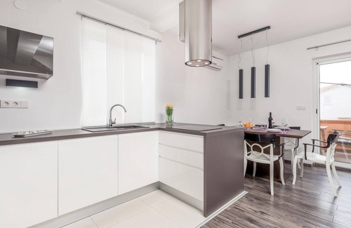 The flats are spacious, comfortable, well-equipped and consist of two floors. There is a shared covered terrace with a shared barbecue where you can prepare your favourite dishes and take part in Croatian life. For guests who want to be active, there is a shared activity room located on the ground floor, in a separate part of the house. Here you will find a bicycle, treadmill, table tennis and billiards. For those who want to relax, there is a wellness area consisting of a whirlpool and a Finnish sauna for a fee. The apartment's terraces are orientated towards the sea and invite you to relax during the day or in the evening, so you can enjoy your first coffee in the morning or the sunset.