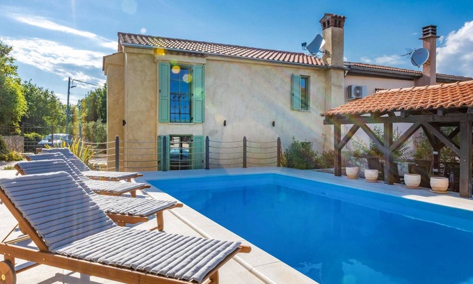 3 bedroom beautiful home in Malinska is located in Rasopasno. 3 bedroom beautiful home in Malinska provides accommodation, featuring Pool, Private Pool, Internet, among other amenities. This House features Pool, Private Pool, Internet, to make your stay a comfortable one.