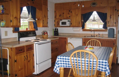 Are you an animal lover who would love to vacation at a place where there is peace and quiet as well as all kinds of animals, both domestic and wildlife, to watch? Do you stress when planning a vacation because you can’t bring your dog(s) along? Would you like to have unlimited long distance calling available rather than trying to use your cell phone in our mountainous area? Then Cabin at Autumn Dancer Llama Farm is the place for you. The cabin is situated on 17 acres of beautifully rolling hills directly below Meadow Creek Mountain. For your canine family members (we allow up to 5 dogs..size doesn't matter), we offer 1/2 -acre of fenced backyard so that they may run and frolic as well as a fenced deck. We've replaced the backyard fence and have added pictures showing the cabin with the new fence.