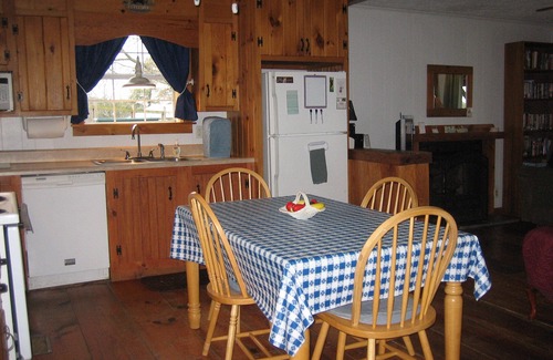 The kitchen is fully stocked with pots and pans, a crock pot, electric roaster pan, coffee pot, toaster oven, four-slice toaster, and many other items for folks who want to do their own cooking. There is seating for 6 at the kitchen table.