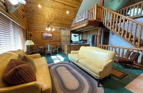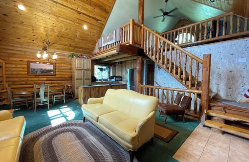 This cabin has 3 levels with plenty of space for large groups of guests as well as a deck with breathtaking views.