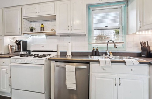 Your family will be close to everything while staying at this 3-bedroom cottage in a safe, family-friendly neighborhood. Located on Cleveland's east side near the I-271 expressway so you're just minutes from downtown Cleveland. There are three bedrooms (a double and two queens), a full bath stocked with towels and personal care products, a full kitchen with modern stainless appliances, a living room with Smart TV, full dining room and on-site laundry facilities. You also get central AC, high-speed WiFi, and garage parking space.