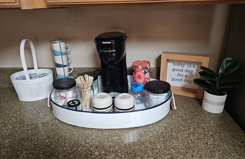 Forget your worries in this spacious and serene space. Nestled in a quiet country setting, this cozy basement apartment offers a cool, comfortable escape from the summer sun. With warm lighting, soft textures, and a calming color palette, it's the perfect place to unwind after a day of adventure.