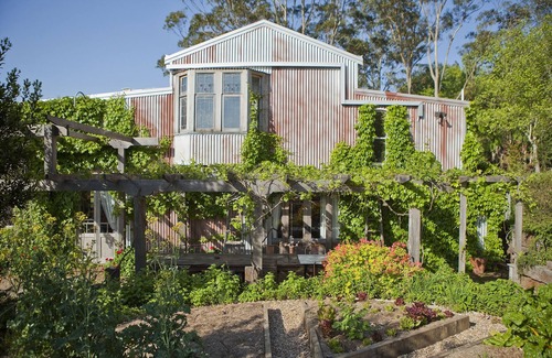 The kitchen opens onto an outdoor entertaining area and dining space, complete with a wood fire pizza oven and BBQ. Lean over and pick herbs from the garden and collect the free range eggs from our chickens to add to your sumptuous dinner. There is an outdoor fire pit and outdoor bath just outside The Shed - perfect for adventure seekers.